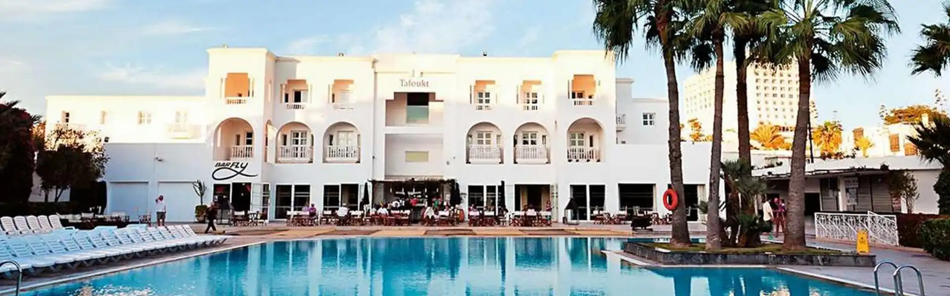 The main restaurant of the resort, Muso, offers guests a packed buffet for breakfast, lunch and dinner. Cafe Del Mar Restaurant offers a selection of delicious A’la Carte dishes for dinner. A snack bar is also available daily for snacks or beverages in-between meals. All of the restaurants serve Moroccan and international cuisines. Take advantage of the all-inclusive package with unlimited local alcoholic beverages and soft drinks at the resorts 3 bars: Pool Bar, Champion Bar and Factory Discotheque.