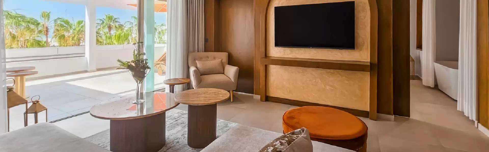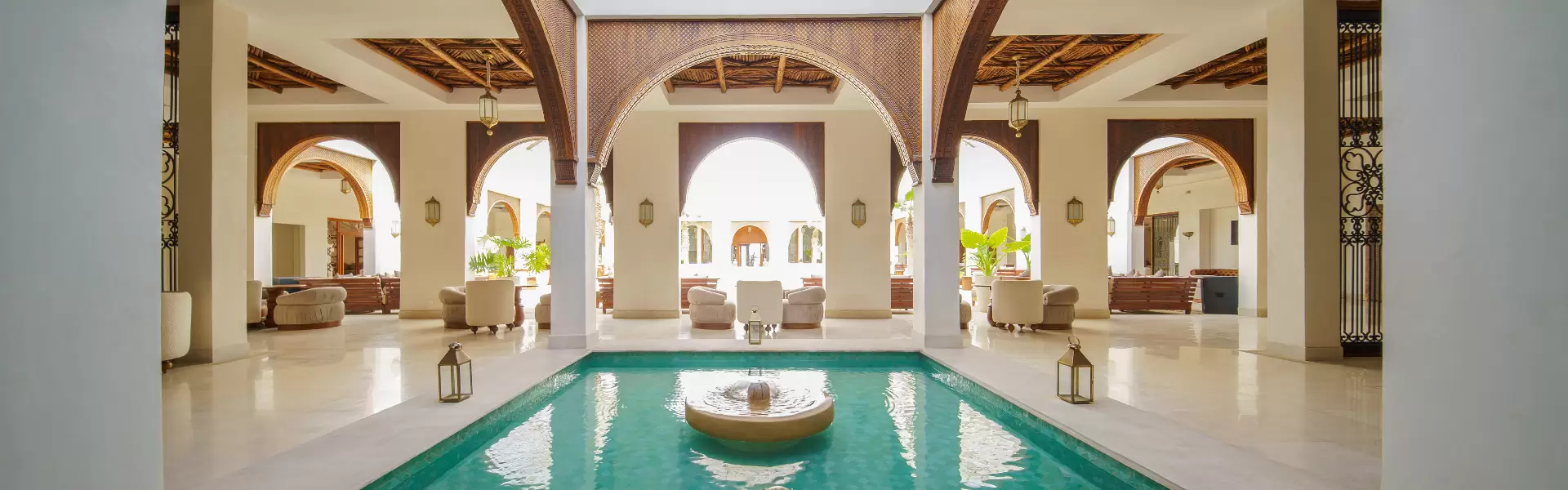 The accommodation options of this exquisite resort range from luxury rooms to suites and villas with a private pool. All set in a chic décor, the comfortable rooms welcome their guests with warm colours and carved lamps that create the Moorish ambience. The meticulously prepared wooden carved furnishings of the rooms highlight the Moroccan craftsmanship. Rooms are equipped with air conditioning, safety deposit box, internet, welcome products and a bathroom with a bathtub.