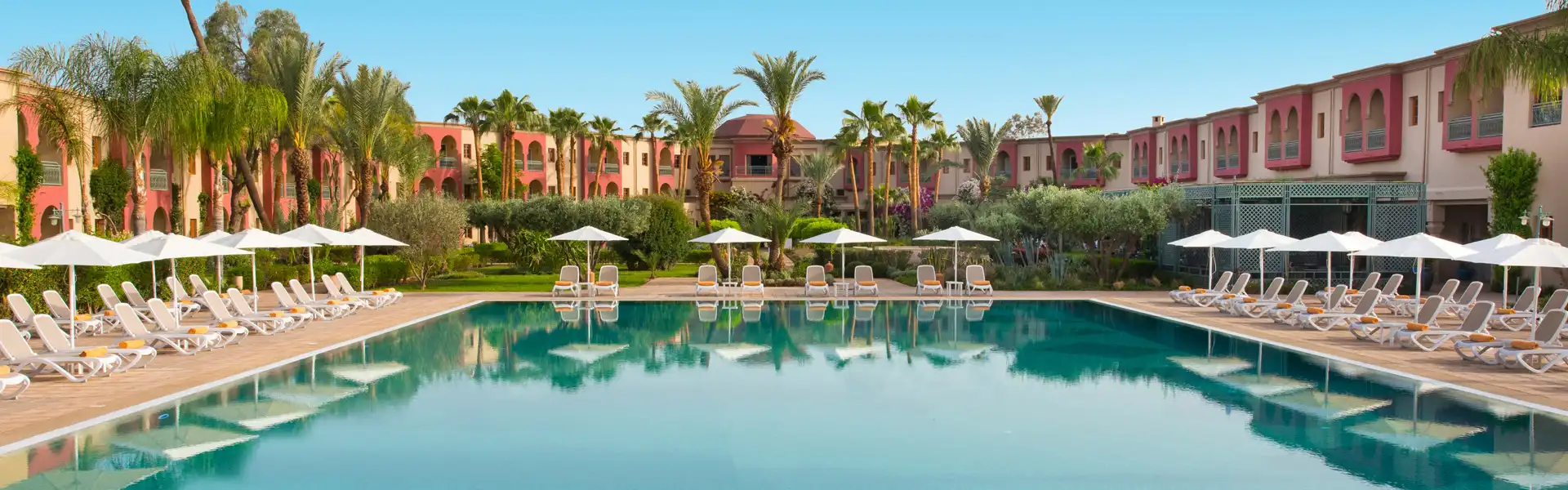 The Palmeraie of Marrakesh is a palm oasis with over 100,000 palm trees planted during the Almoravid dynasty in an area filled with beautiful, vast gardens. It is the setting for Iberostar Club Palmeraie Marrakech, just 15 minutes from The Medina, the historic centre of this exotic city, which houses many treasures including the iconic Jemaa el-Fnaa square, Koutoubia Mosque and Bahia Palace, among others.