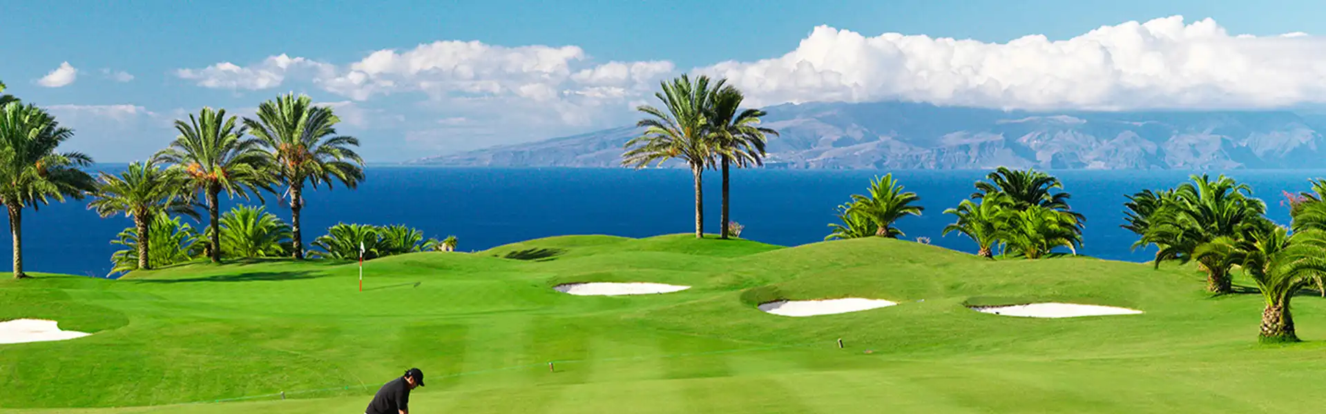 Rising to a peak elevation of 315m above sea level in our luxury resort, the 6,271-metre meticulously sculpted course is ensconced in a landscape featuring more than 25,000 palm trees, white-sand bunkers, and dozens of lakes connected by waterfalls. With incomparable views of the ocean and surrounding Canary Islands from most of its 18 holes, guests truly play on top of the world. Acclaimed as one of the finest in Spain, this is a Tenerife golf course crafted to test and surprise all golfers, no matter their level of expertise.